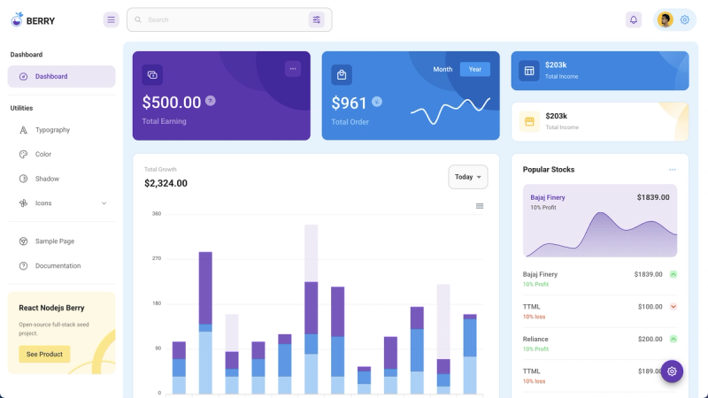 Berry Django React Free Admin Template is a sleek and modern dashboard template designed for developers looking to build admin panels quickly. Key features include:
