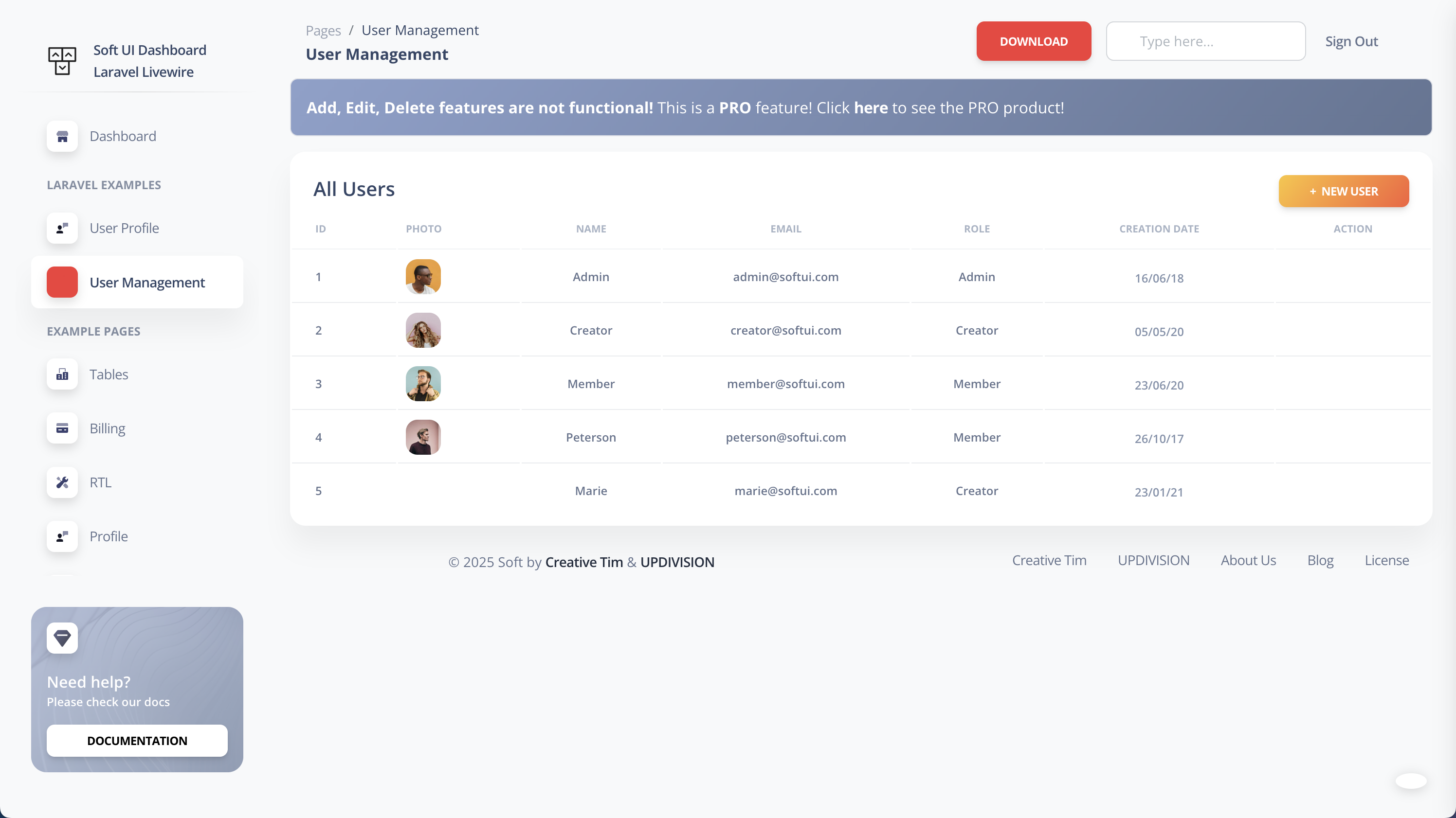 Soft UI Dashboard Laravel Livewire is a comprehensive full-stack solution combining the popular Soft UI design with Laravel backend. Key features include: