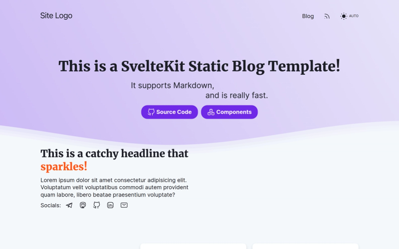 The SvelteKit Static Blog Template is designed for developers and content creators who want a fast, responsive, and visually appealing blog or portfolio site. Key features include: