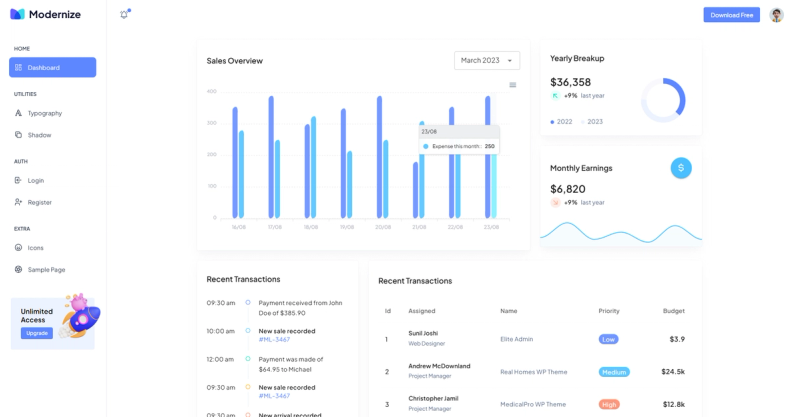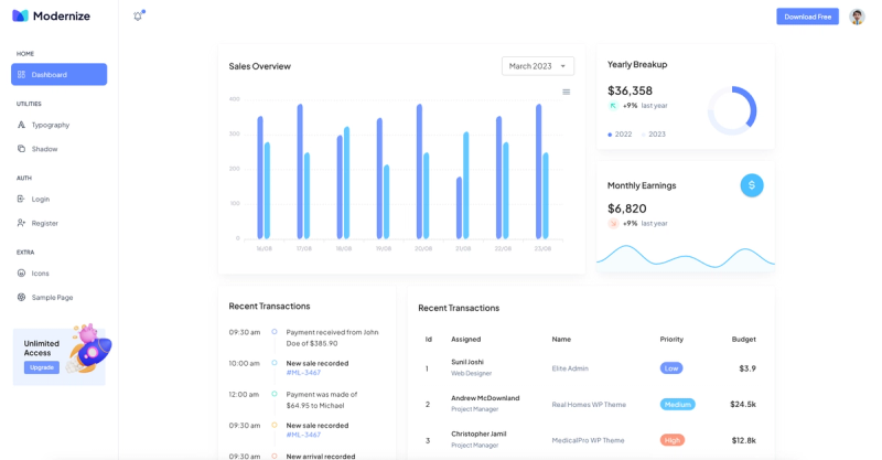If you are looking for an eye-catching and elegantly designed free Nuxt Js admin template that comes with several added features, then look no more. Modernize Free Vuetify 3 Vuejs Admin Dashboard Template that has everything you require to develop an amazing web app. It has a very simple sleek design which will give your next project a professional and engaging look.