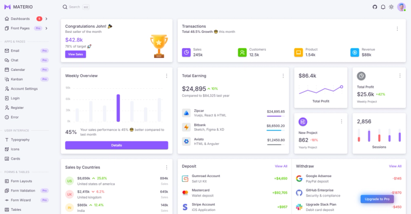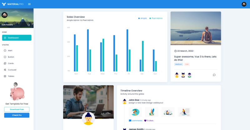 Materio Free Dashboard – VueJS 3 – is the most developer-friendly & highly customizable Admin Dashboard Template based on latest VueJS & Vuetify.